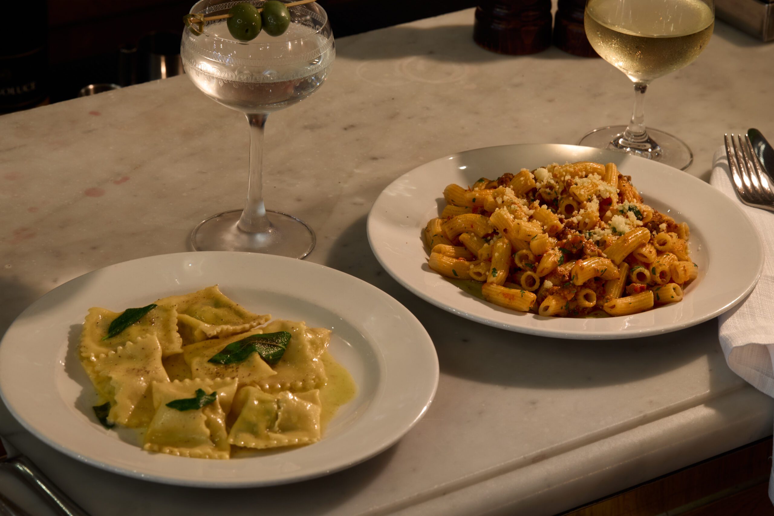 £15 main course pastas. £5 Negronis, Martinis, house wine and tiramisu. No booking needed.